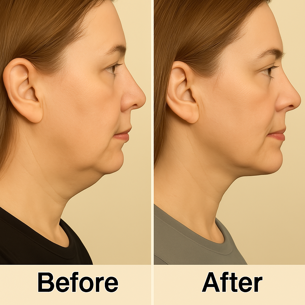 نتیجه معمولاً باعث ظاهری جوانتر، زاویهدارتر و هماهنگتر در قسمت پایین صورت و گردن میشود.